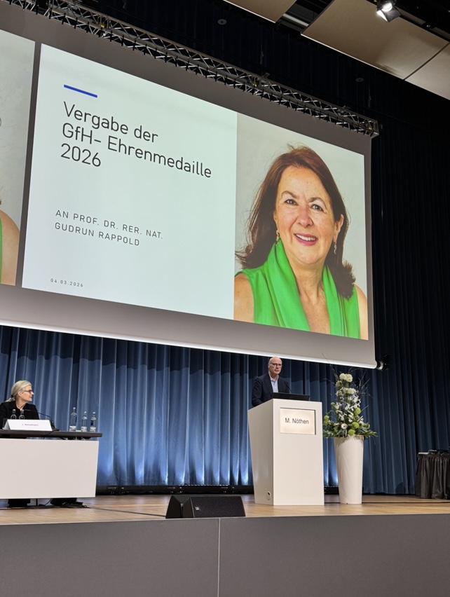 Prof. Rappold erklärte anlässlich der Ehrung: „Die Auszeichnung ist eine große Ehre, handelt es sich doch um die höchste Anerkennung, die unsere Gesellschaft aussprechen kann. Nach einer langen Reihe von berühmten Männern hat das Auswahlgremium der GfH mich als Preisträgerin und damit zum ersten Mal eine Wissenschaftlerin gewählt. Dies zeigt mir auch, dass sich in den Köpfen der jüngeren Entscheidungsträger zum Thema Geschlechtergerechtigkeit etwas geändert hat. Für mich waren schon immer wertschätzende Beziehungen im Team und zwischen Kollegen und Kolleginnen wichtig.“